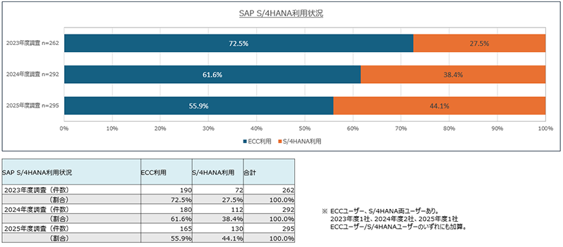 - 「SAP S/4HANA」利用比率は昨年から5.7ポイント増加し、クラウド型ERPの利用が主流に -